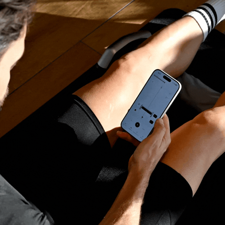 Über die RheoFit App steuerst du Programme, Geschwindigkeit, Druck, Timer und Zielbereiche ganz leicht. Die Rolle bleibt währenddessen komplett freihändig und arbeitet millimetergenau durch deine Trigger Points.